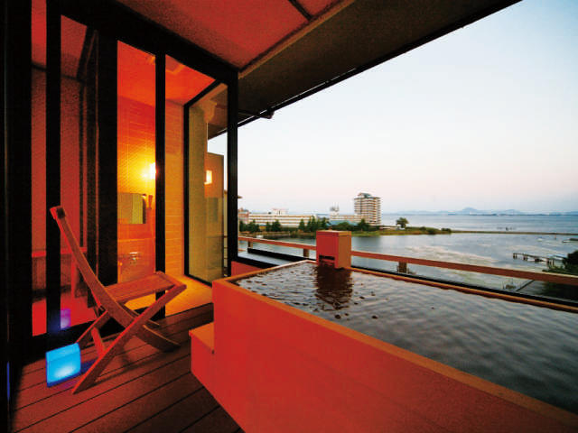 解放感のある吹き抜けのロビーや客室からは、琵琶湖を一望することができます。人気の露天風呂付き客室プランでは、滋賀県特産の近江牛を心ゆくまで味わいましょう。充実した館内設備や優雅な客室、四季折々の湖国料理など総合的に満足度の高い宿です。